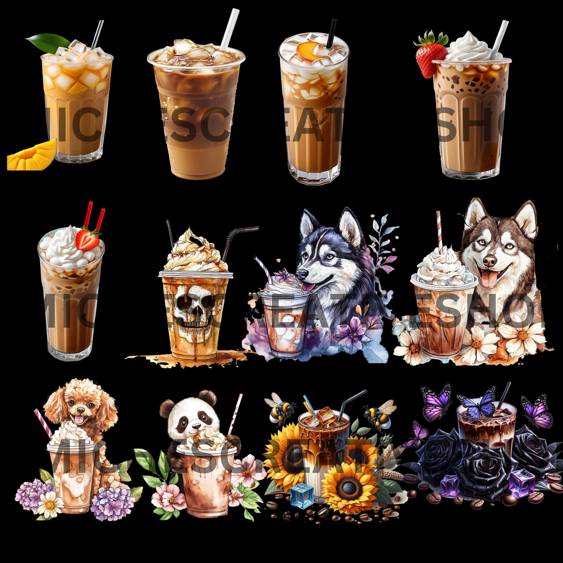 COFFEE CAFFINE COLLECTION Clip Art Bundle Iced Coffee and Coffee Cup Illustrations Digital Coffee Art for Crafts Stickers sublimation create