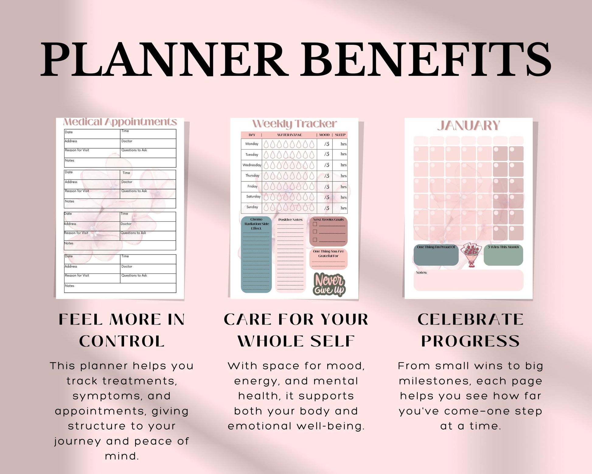 Whether you're newly diagnosed or going through treatment, this Cancer Wellness Planner is designed with compassion, clarity, and care to help you stay organized, track your health, and feel supported — all in one place.