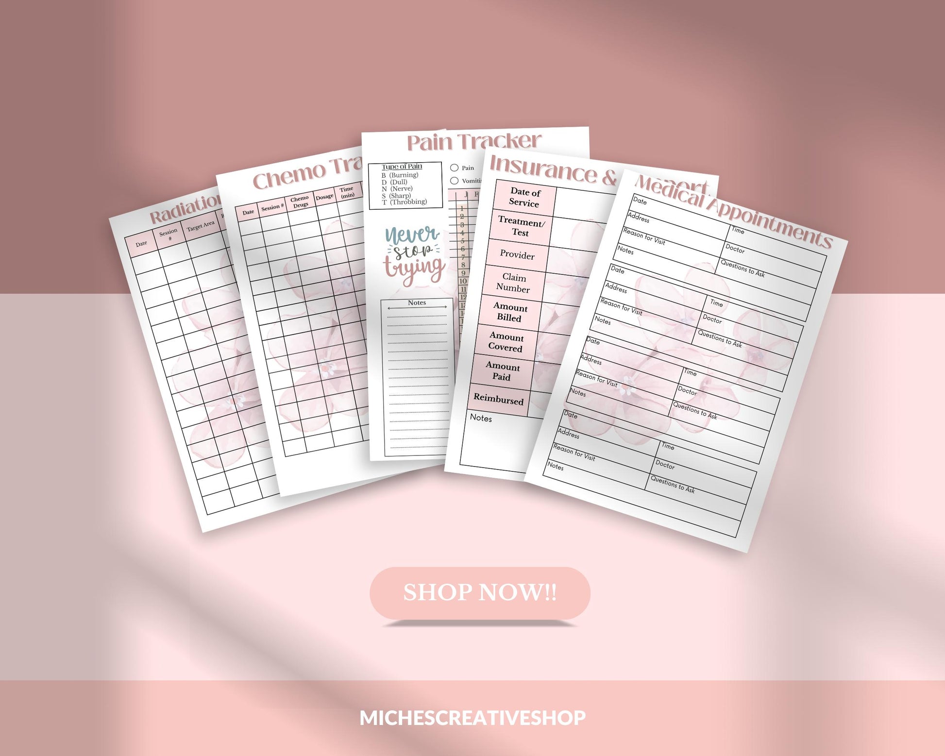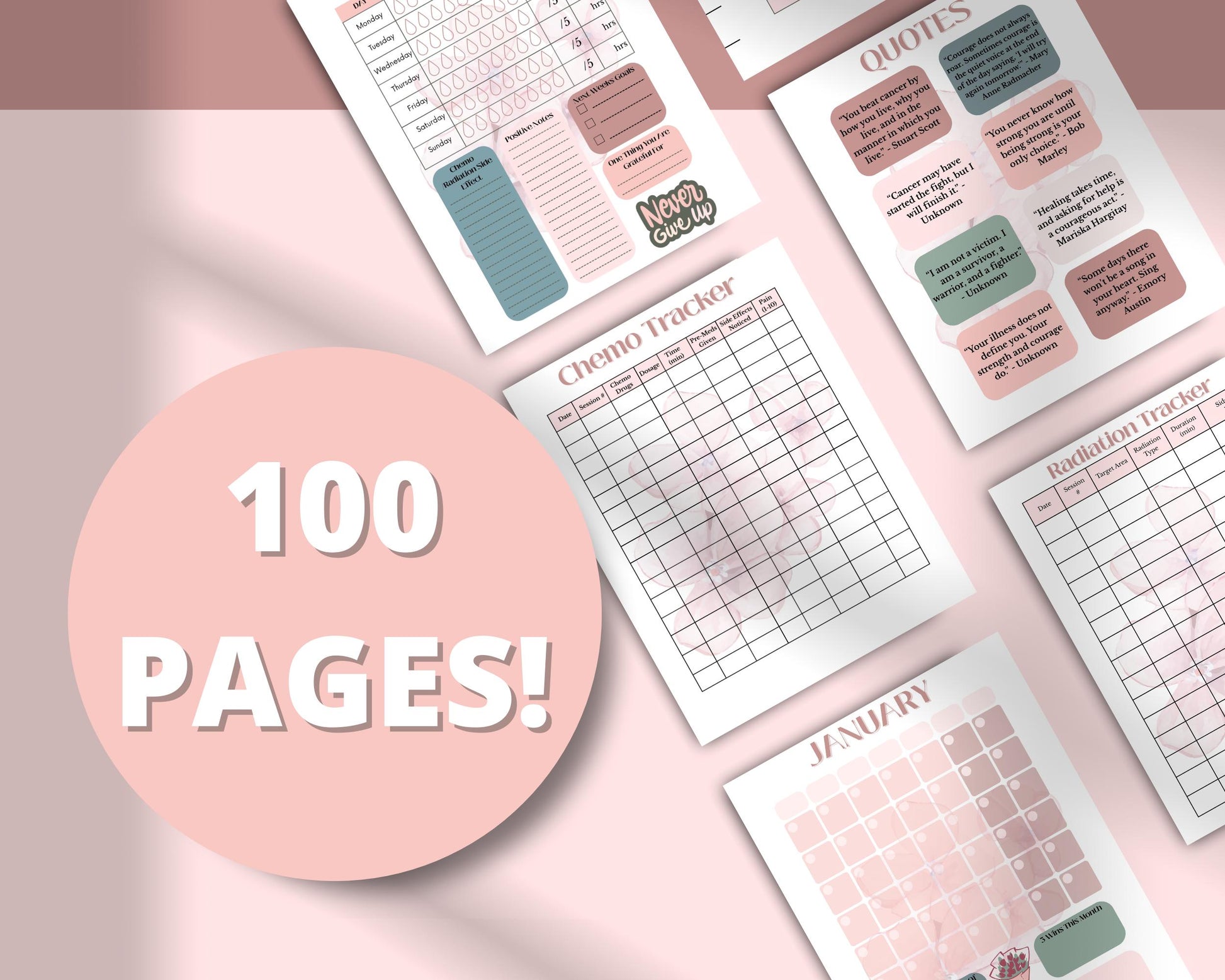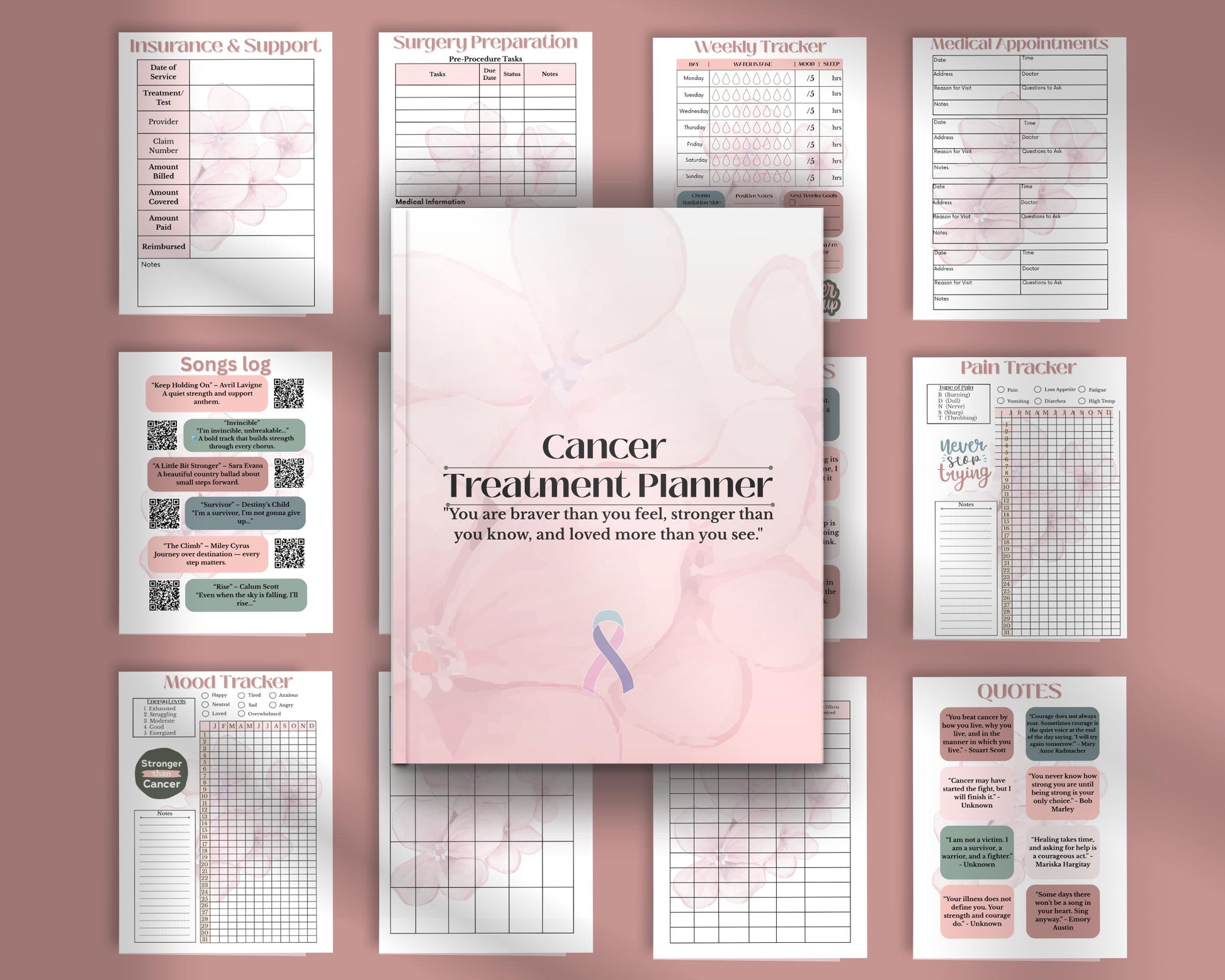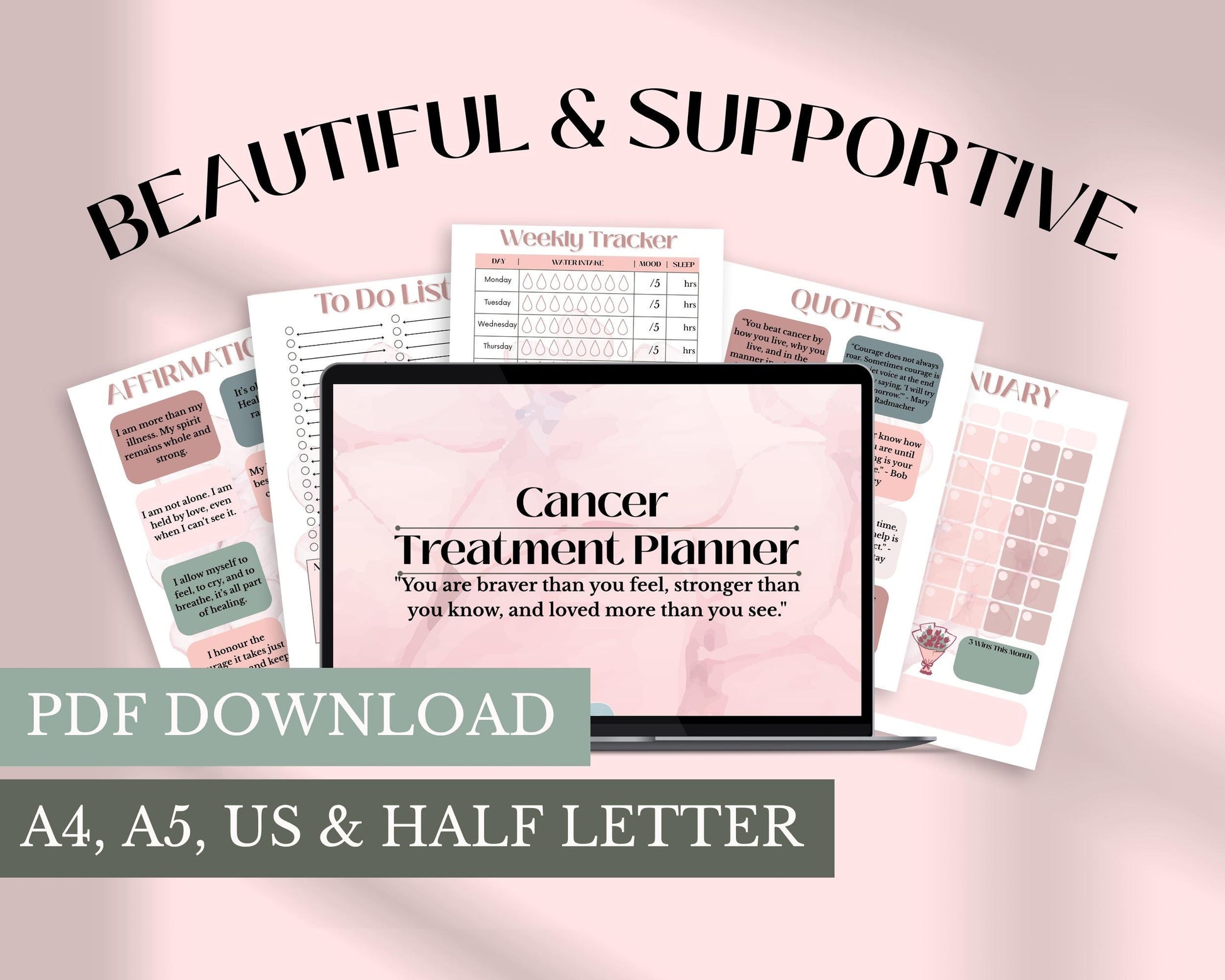 Digital Cancer Wellness Planner PDF Printable Health Tracker Chemo Symptom Log Self-Care Mood Tracker A4 Cancer Treatment Journal