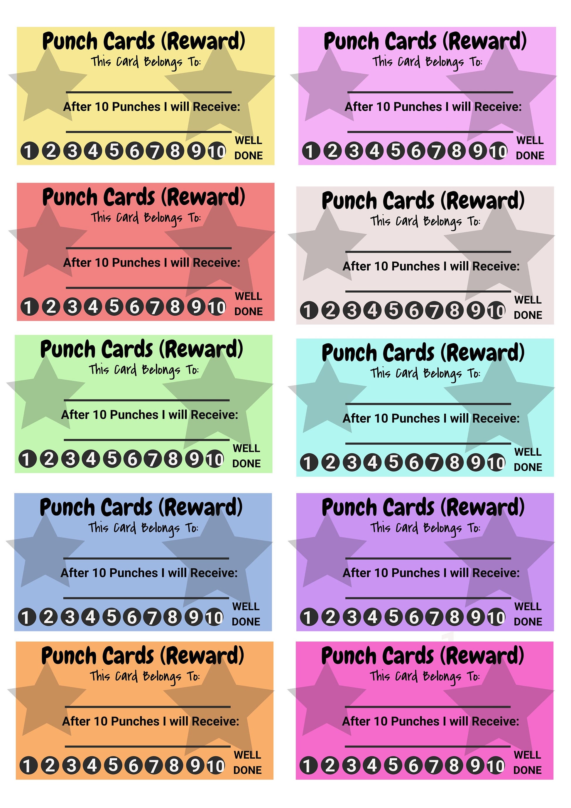 Reward Punch Card, Classroom Incentive, Kids Behaviour Card, Homework Card, Preschool Routine, or to use at home, Digital Instant Download