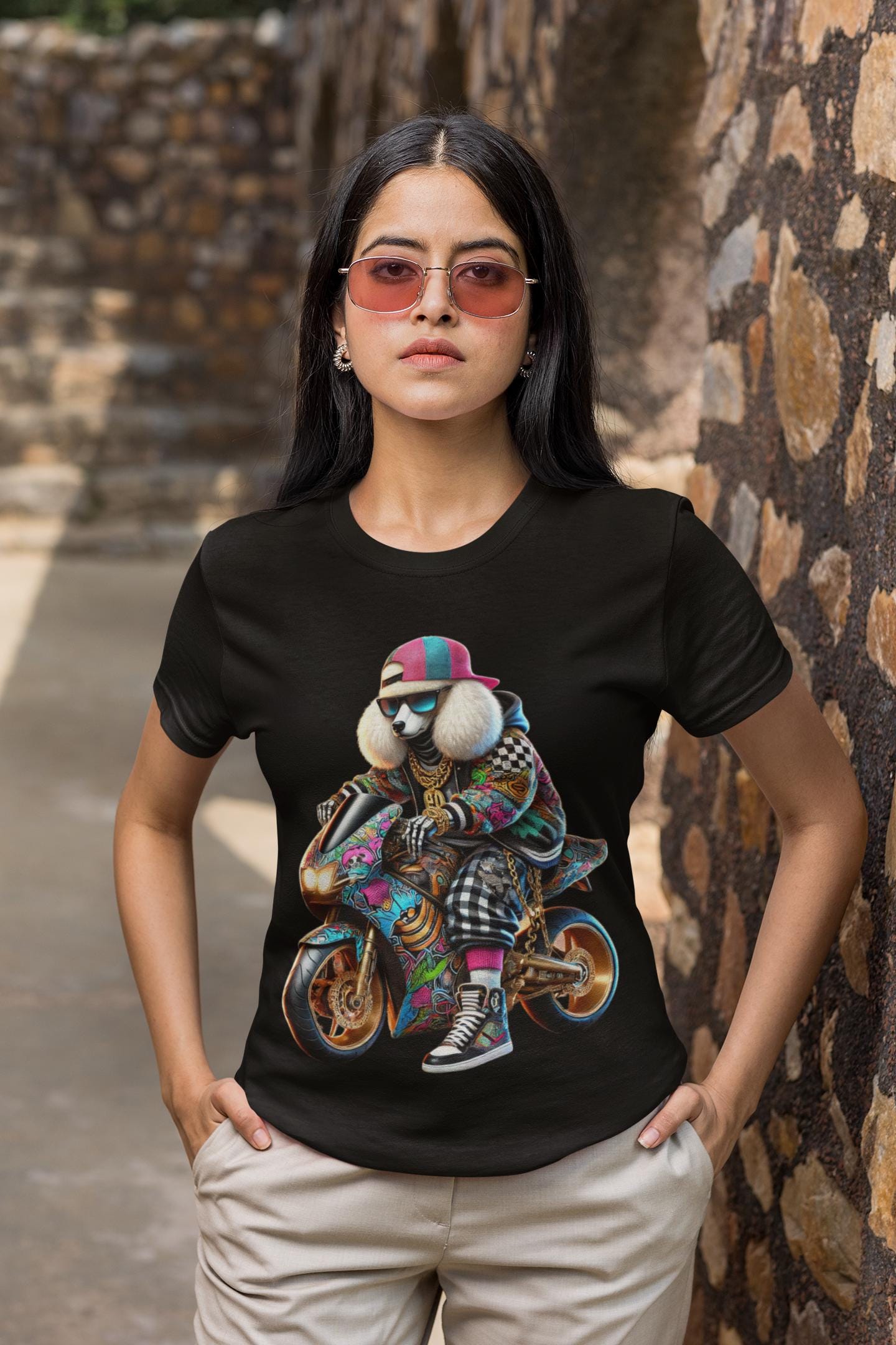 π Styled with hip-hop-inspired shoes and a patched hoodie for ultimate urban vibes.